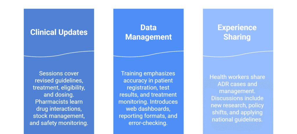 TB care is rapidly evolving—with new diagnostics, updated treatment regimens, and digital health tools. Without continuous training, even experienced staff can fall behind. Our virtual learning sessions close that gap by making knowledge accessible, timely, and practical.